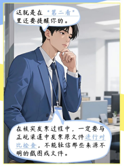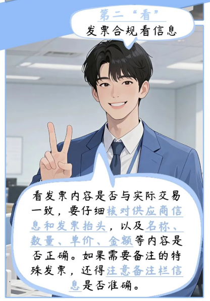 除了查验发票的真伪,还需要核对发票的内容是否与实际交易相符。包括购买方、销售方信息,商品或服务名称、数量、单价等是否准确无误。